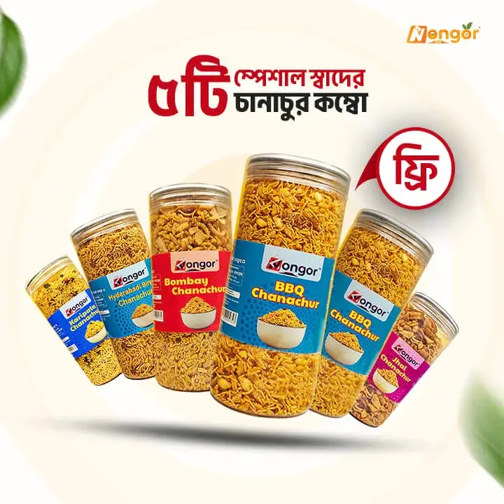 চানাচুর তো অনেকেই খায়, কিন্তু চানাচুরের স্বাদেও যে আভিজাত্য থাকতে পারে তা কি জানতেন? নোঙ্গর ফুড আপনার জন্য নিয়ে এসেছে ৫টি ভিন্ন স্বাদের এক স্পেশাল চানাচুরের কম্বো প্যাক। আপনারা যারা ভিন্ন স্বাদের প্রিমিয়াম কোয়ালিটির চানাচুর পছন্দ করেন এবং অতিথি আপ্যায়নে বিশেষ কিছু পরিবেশন করতে চান, তাদের জন্যই আমাদের এই স্পেশাল চানাচুর কম্বো প্যাক।